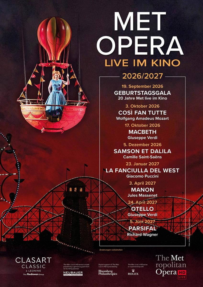 Der Kartenvorverkauf für die beliebten Live-Übertragungen aus der Metropolitan Opera, New York, startet ab dem 30. Mai 2026 ab 10.00Uhr